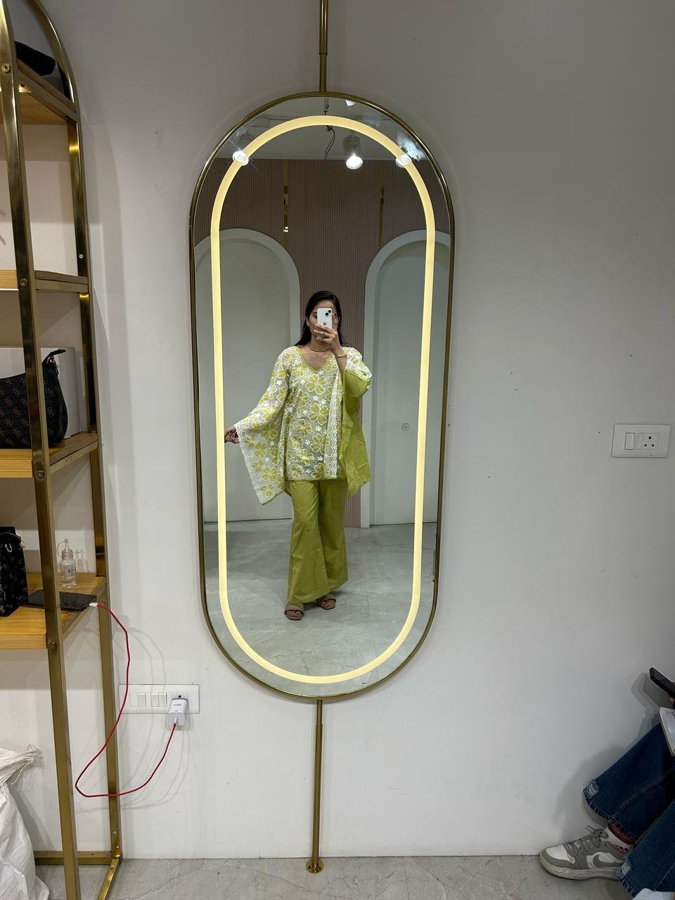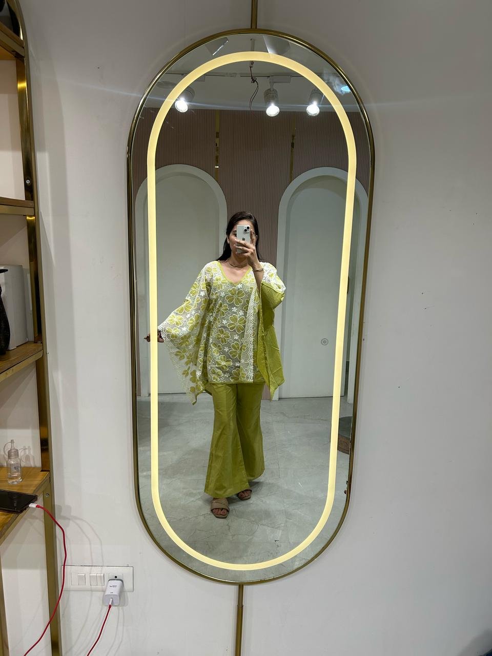 A breezy and elegant 3-piece co-ord set featuring floral lace embroidery, flared sleeves, and a matching dupatta. Perfect for festive and casual wear.