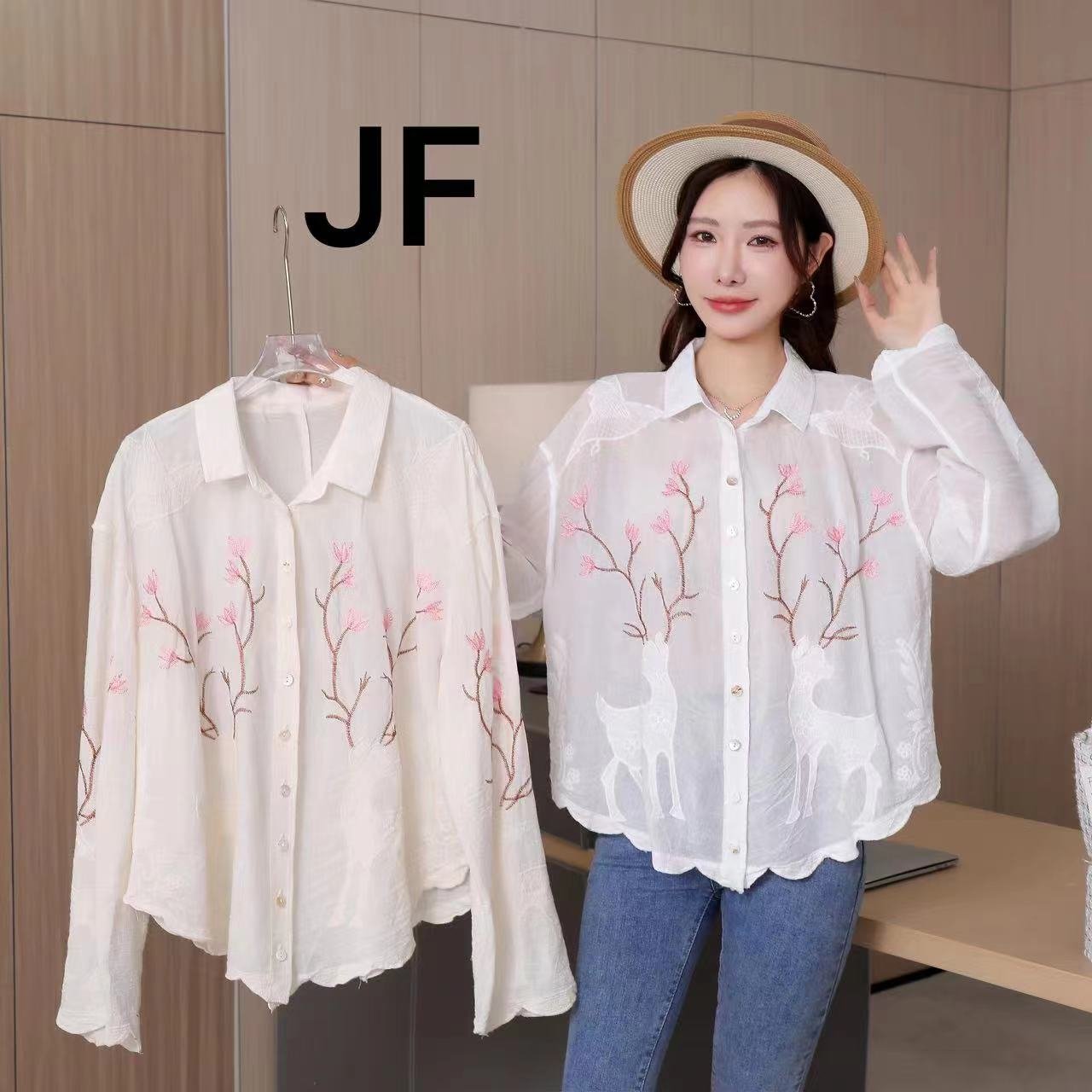 White Korean shirt with flowers design