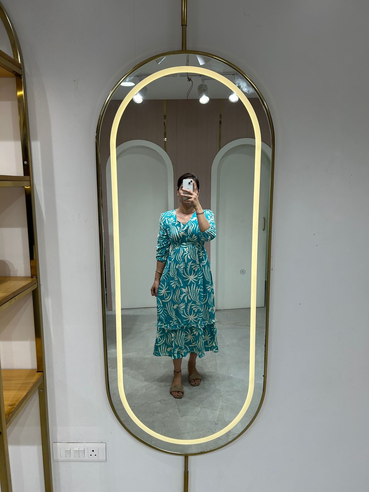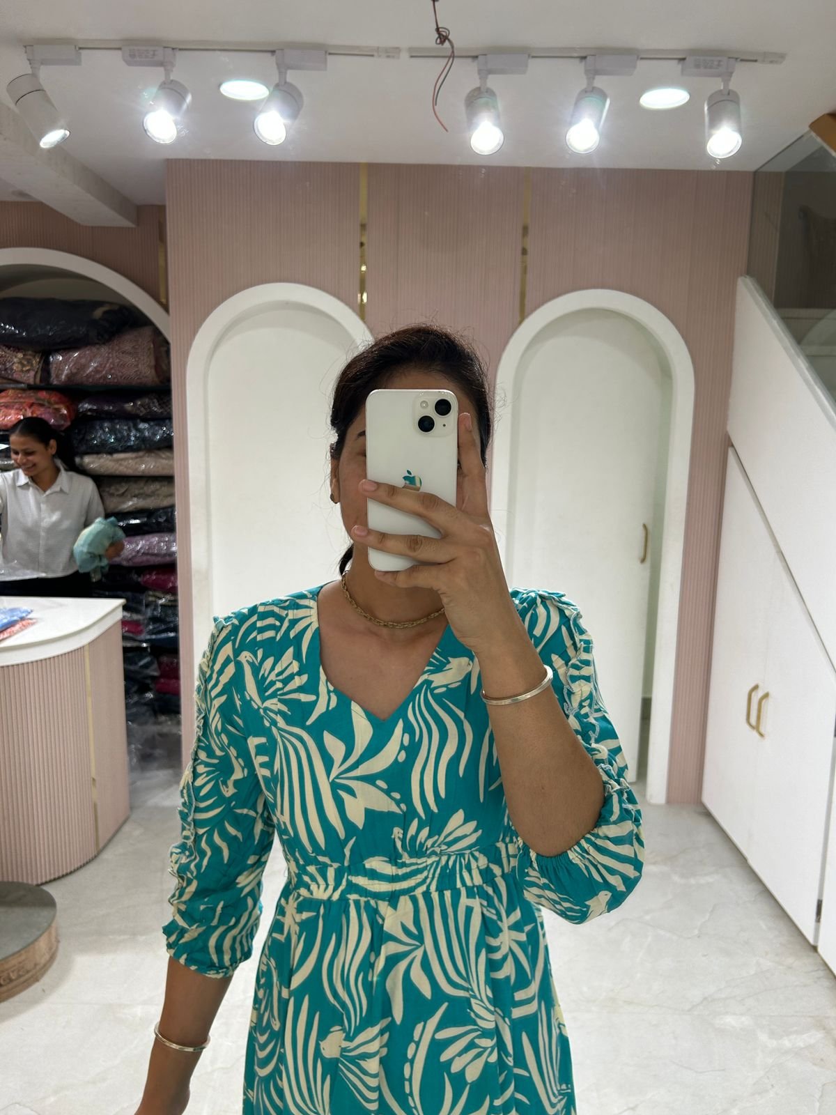 Dive into style with the Teal Oasis Midi Dress, featuring a bold teal and white abstract print. Its V-neckline and gathered waist make it a perfect pick for effortless elegance.