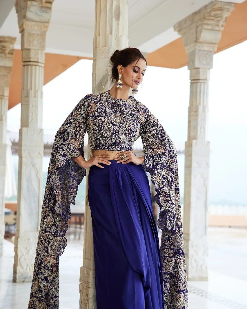Royal Blue Embroidered Western Top & Skirt Set This stunning set features intricate embroidery that brings together classic western design with a touch of luxury. It's crafted with high-quality fabrics, ensuring long-lasting wear and a comfortable fit. Perfect for any occasion, this set will elevate any outfit with its elegant and timeless style.